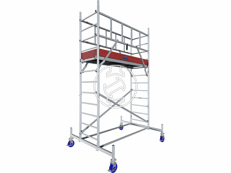 A Krause ProTec alumínium gurulóállvány professzionális és biztonságos megoldást nyújt a 7 méteres munkamagasságban végzett szerelési vagy homlokzati munkálatokhoz. A robusztus, mégis könnyű szerkezet az intelligens rögzítőrendszernek köszönhetően szerszámok nélkül, gyorsan és egyszerűen összeállítható a munkaterületen. A fékezhető, állítható magasságú kerekek lehetővé teszik az állvány könnyed mozgatását és a talajegyenetlenségek precíz kiegyenlítését, garantálva a tökéletes stabilitást. A csúszásmentes járólapok és a beépített korlátrendszer maximális védelmet nyújtanak Önnek a magasban végzett feladatok során, megfelelve a legszigorúbb munkavédelmi előírásoknak is.